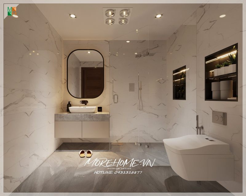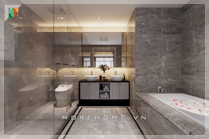 Morehome giới thiệu mẫu phòng tắm trang trí phong cách hiện đại nội thất tiện nghi mang tới tổng thể không gian sang trọng.