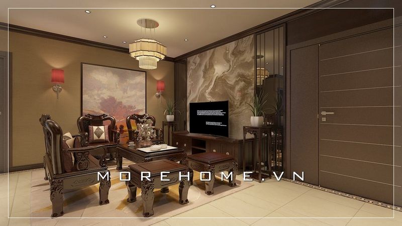 Góc phòng khách được trang trí theo xu hướng của Nhật Bản để làm nổi bật những điểm nhấn tinh tế, nhã nhặn và sang trọng.